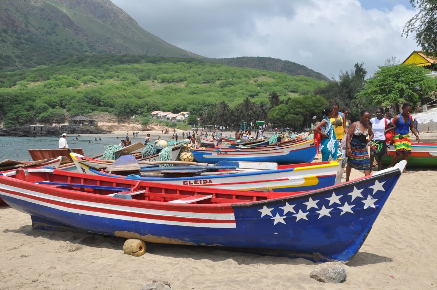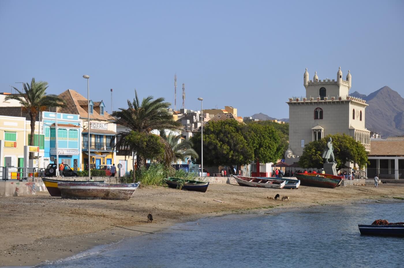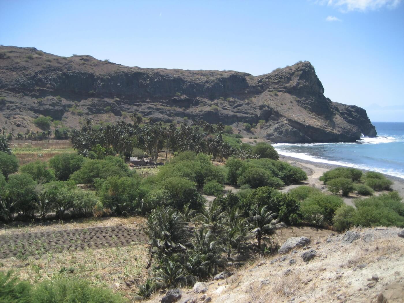 Entlang der Küste fahren Sie mit dem Aluguer Collectivo (Sammeltaxi) auf der 2009 eröffneten Asphaltstraße nach Porto Novo. Mit der Fähre geht es über den Kanal wieder zurück nach Mindelo. Weiterflug nach Santiago. Taxifahrt durch das Inselinnere von Santago an den Palmenstrand von Tarrafal.