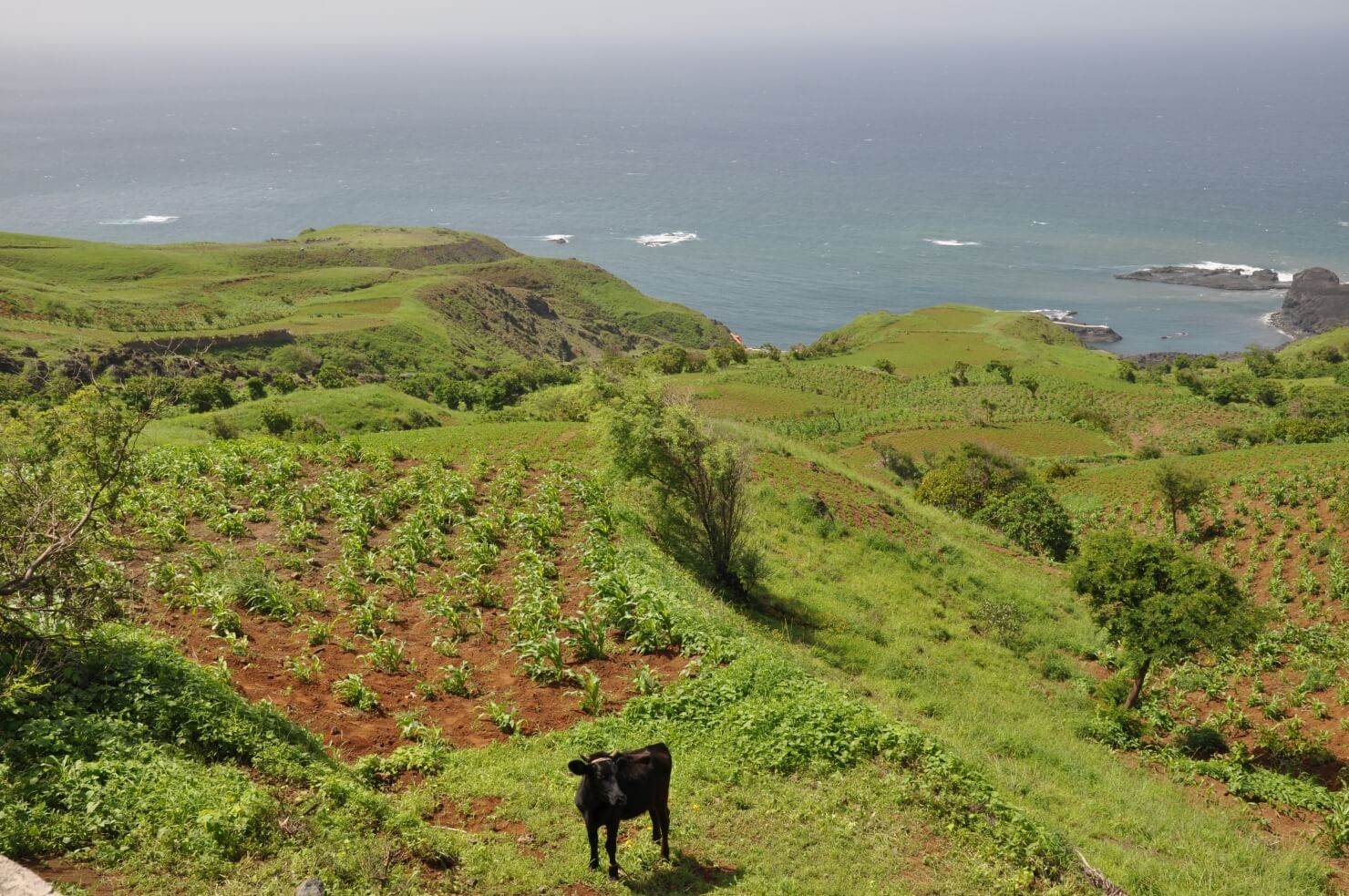 Am frühen Morgen wandern Sie auf der vulkanischen Hochebene zum Monte Velha. Hier beginnt der lange Abstieg bis ans Meer nach Mosteiros. Der halbfeuchte Nebelwald geht über in die Gebiete der Kaffeepflanzungen, gefolgt von fruchtbaren Feldern mit Maniok, Süßkartoffeln, Gemüse, Papaya-, Orangen- und Zitronenbäumen. Aber auch Cashew-, Mango- und Jackfruchtbäume säumen Ihren Weg hinab ans Meer.
