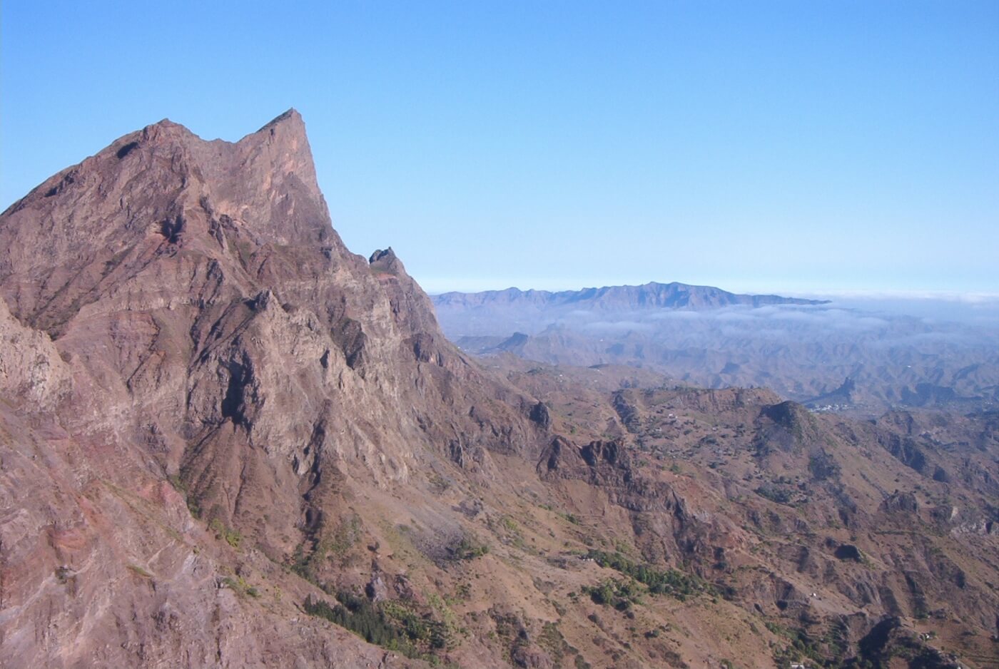 Heute wandern Sie im stetigen Auf und Ab am Fuße des Pico de Antonia nach St. Catarina. In der Ferne blinkt immer wieder die geteerte Straße nach Assomada. Sie aber genießen die großartige Landschaften und Einblicke, die kein durchfahrender Tourist jemals wahrnehmen wird.