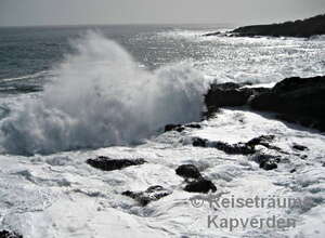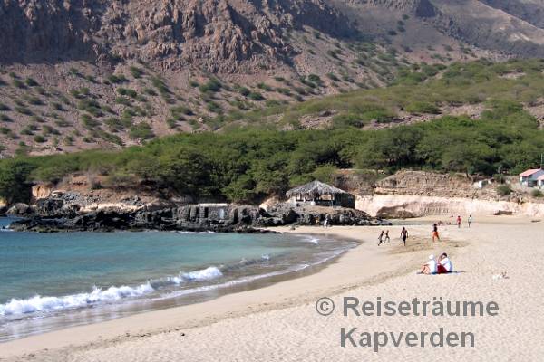 Am Rande des expandierenden Fischerortes, liegt der einzige helle Palmenstrand der Kap Verden. Der feinsandige Strand und das tiefblaue Meer laden geradezu ein hier erholsame Badetage im Schatten der Palmen zu verbringen.