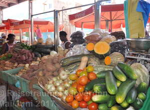 Dies ist der älteste Obst- & Gemüsemarkt der Stadt, auf dem viele Städter gerne einkaufen. Bedingt durch seine Funktion als Hautpstadt und die Kaufkraft der Großstädter und v.a. der ausländischen Diplomaten ist das Angebot gerade auf diesem Markt reichlich, da wird Praia mit allem beliefert, was die Landwirtschaft der ganzen Insel herzugeben vermag.