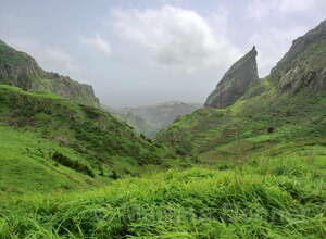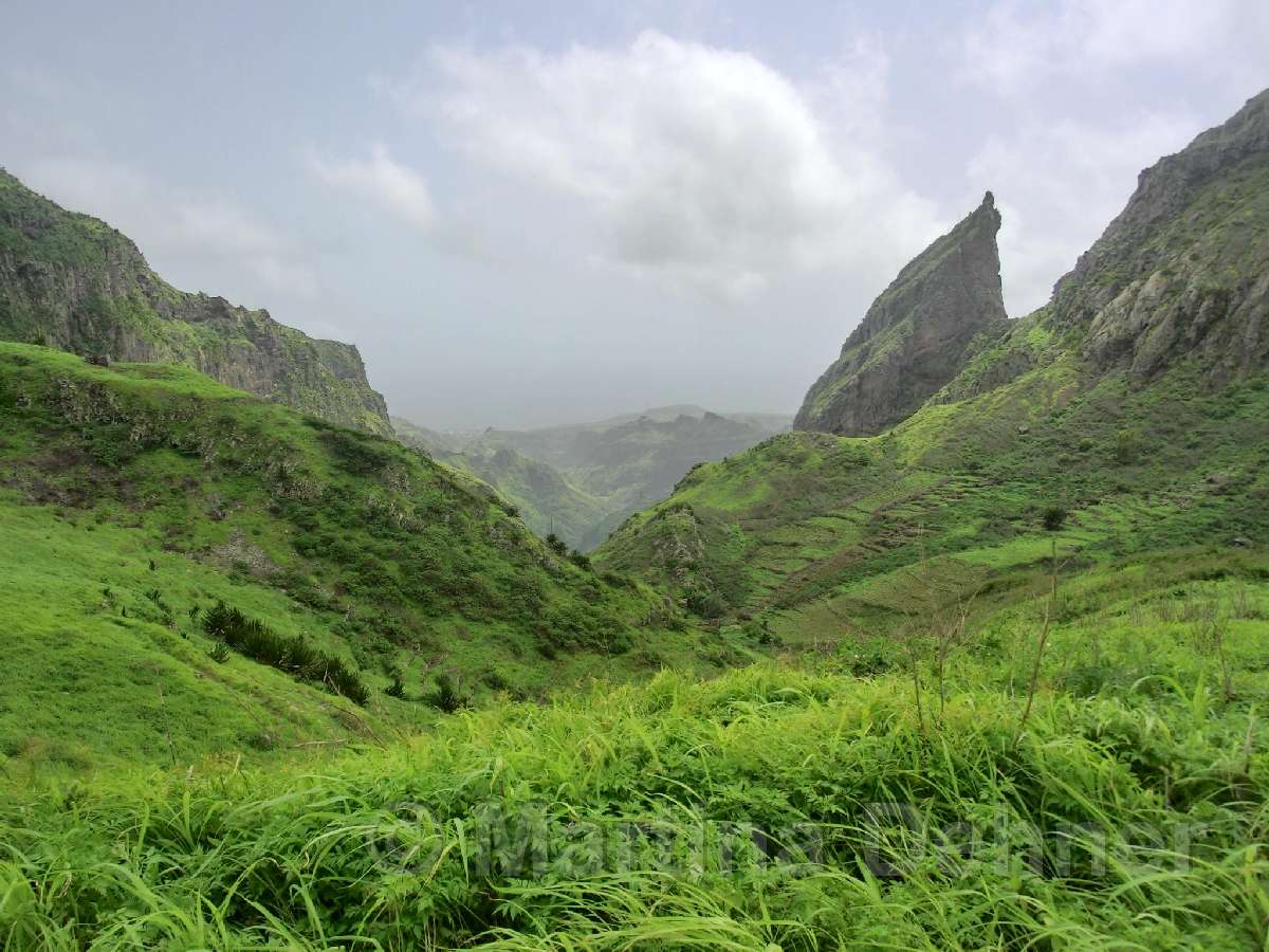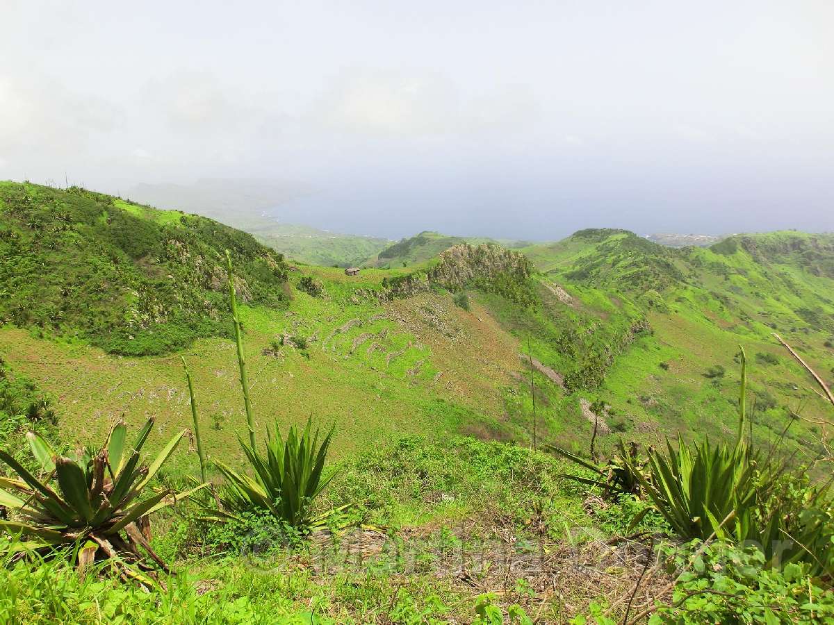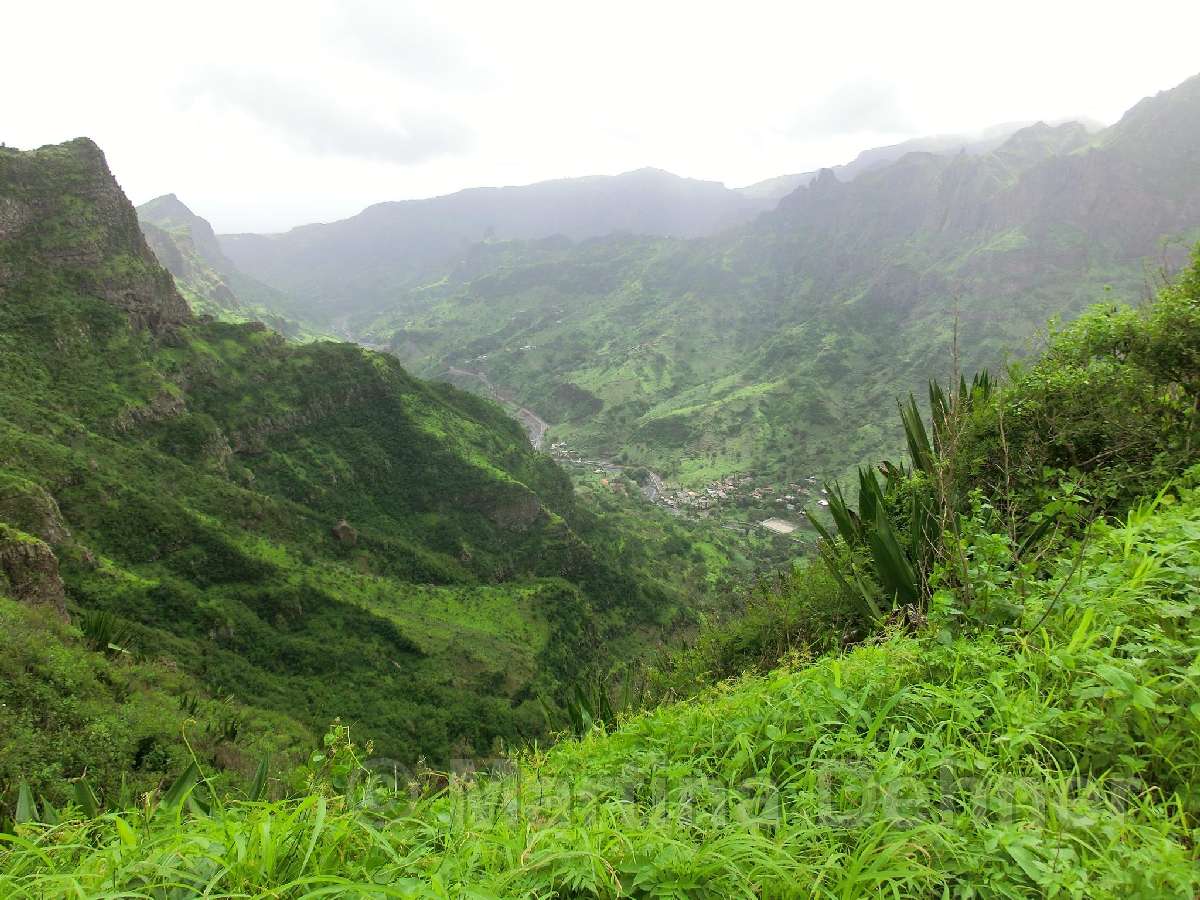 Gleich nach dem Start geht es steil bergauf. Oben angelangt geht es dann auf kurvigen Wegen sofort wieder hinab. Insgesamt folgen zwei weitere Steigungen, allerdings verläuft der Großteil der Wanderung bergab. Gesäumt ist der Weg meist von Algarven, welche meterhohe Blüten tragen, Limettenbäumen und "Língua-da-vaca"-Sträuchern. Zudem führt der Weg oft entlang oder durch Felder der Kapverder, welche dort größtenteils Süßkartoffeln und Mais anpflanzen. In der Ferne kann man auch die dazugehörigen Häuser und Dörfer entdecken, manchmal quert man das ein oder andere Haus auch direkt. Die komplette Wanderung belohnt mit tollen Aussichten. Nach etwa der Hälfte der Strecke gibt es aber eine ganz besondere Aussicht, denn man sieht die West-, Nord- und Ostküste auf einmal. Die Wanderung endet an der Hauptstraße.