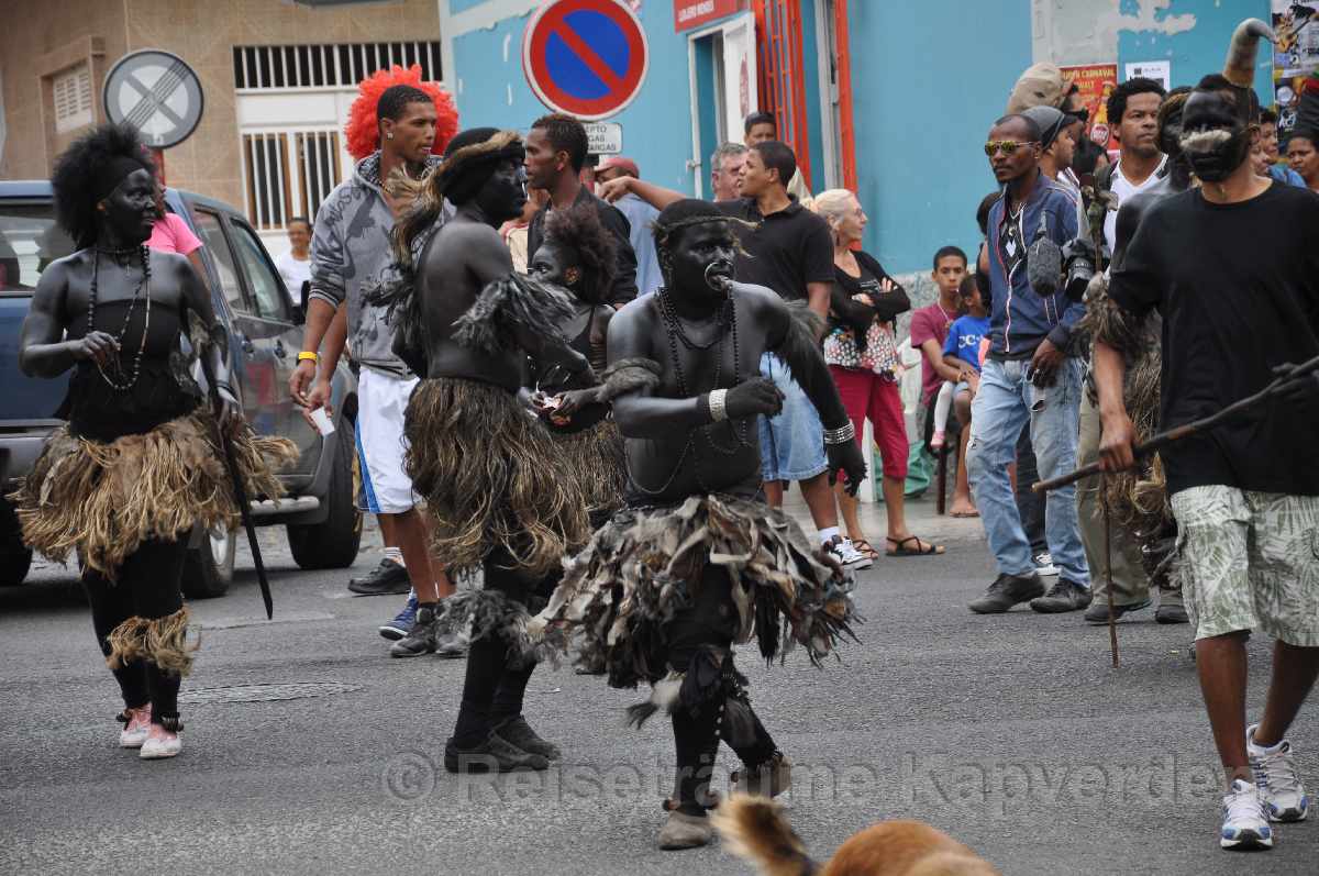 Die Mandingas sind eine Spezialität des mindelensischen Karnevals. Auf den ersten Blick sehen sie aus, wie man sich Kannibalen vorstellt. Den ganzen Körper mit Motoröl tiefschwarz gefärbt, eine Keule oder einen Speer in der Hand und dazu eine ganz besondere Art des Tanzens, bei der sich der unbewegliche Oberkörper mal nach rechts, mal nach links dreht, die Füße treten mit der ganzen Sohle auf den Boden ohne sich abzurollen. Dazu Rhythmen, oftmals auf einfachsten Instrumenten gespielt wie Plastikeimern, Wasserflaschen oder alten Ölfässern, in denen ein fernes Echo aus Afrika vernehmlich widerhallt. Die Mandingas sind ein Ausdruck der Rückbesinnung auf die eigene Identität der Kapverder, deren Wurzeln zum überwiegenden Teil auf dem afrikanischen Kontinent zu suchen sind. Während der portugiesischen Kolonialzeit wurde eine Anerkennung und Praktizierung dieses afrikanischen Erbes systematisch unterbunden. Die Erlangung der politischen Selbstbestimmung 1975 bewirkte eine Erlösung von dieser Knechtschaft.