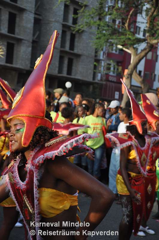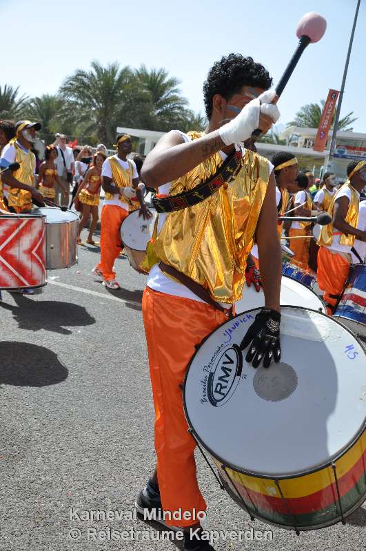 Der Karneval in Mindelo veränderte sich, weg von den rauen Sitten der Kolonialmacht Portugal, wo es üblich war, sich während des Karnevals mit Unrat zu bewerfen. Die Rhythmen der Batucadas (Trommelgruppen), die während des Karnevals durch die Straßen ziehen, vermischen brasilianische Einflüsse (Samba aus Rio de Janeiro, Axé-Rhythmen aus Salvador da Bahia) mit ureigenen kapverdischen Grooves (Coladeira, Batuko, San Jon, Mandingue) zu einem eigenständigen, identifizierbar kapverdischen Mix.