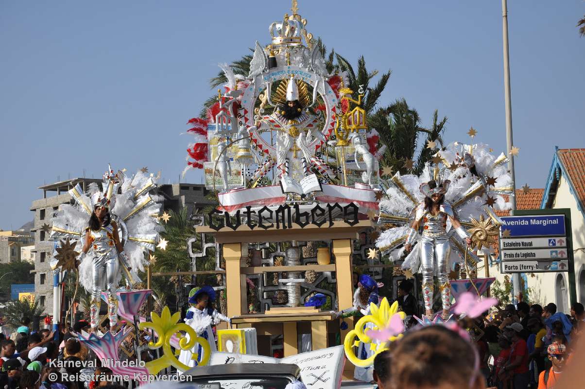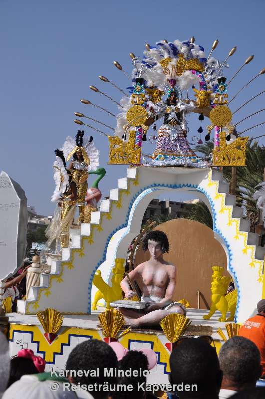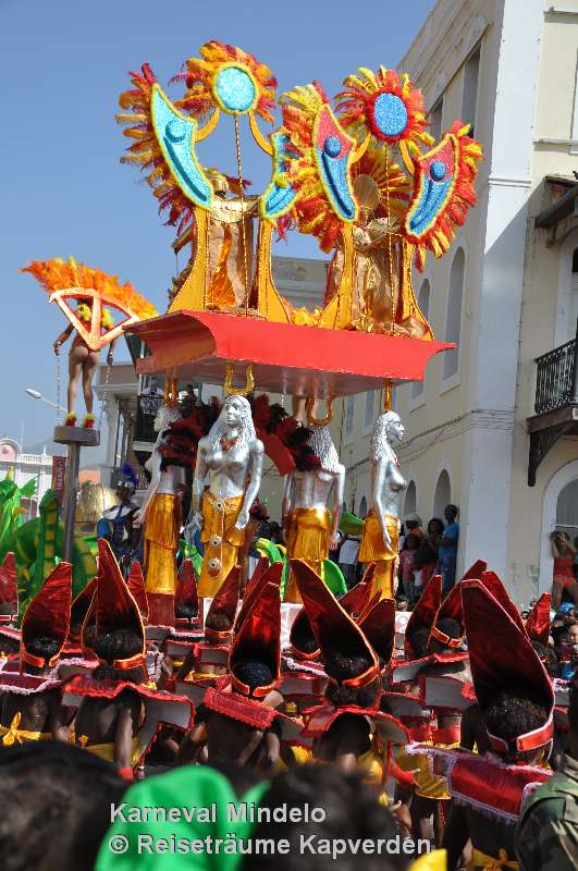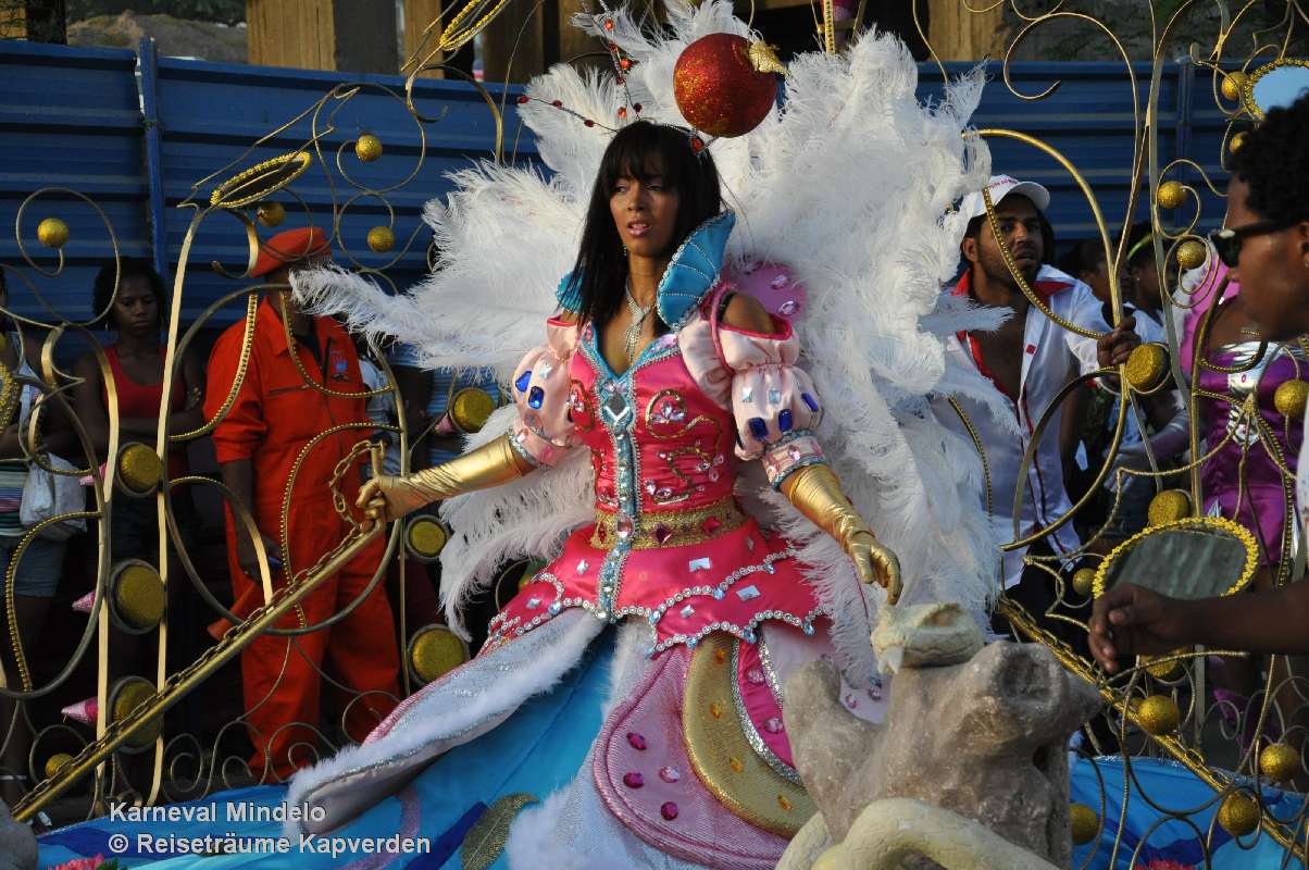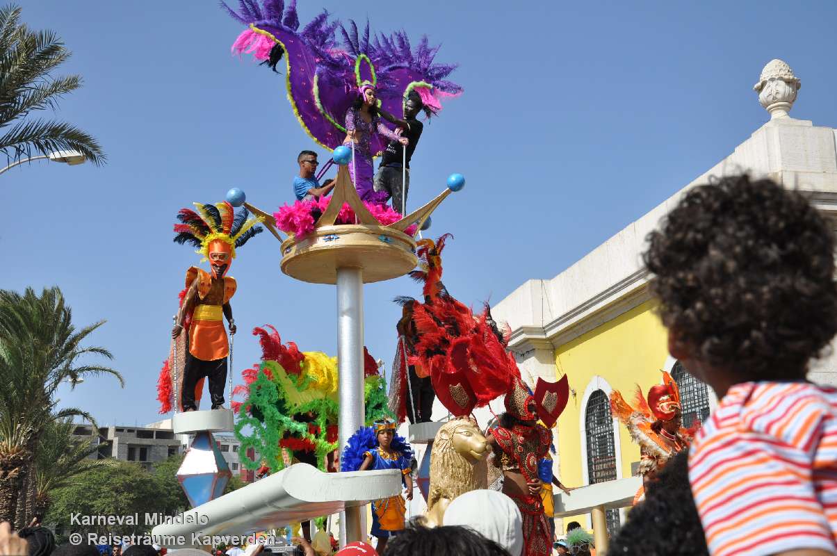 Der Karneval in Mindelo ist der schönste und farbenprächtigste auf den Kapverdischen Inseln. Jedes Jahr mobilisiert er die Menschen dazu, ihre Kreativität, ihre Arbeitskraft, ihr tänzerisches und musikalisches Talent einzubringen um für ein paar Tage die Sorgen des Alltags in ausgelassener Stimmung zu vergessen.