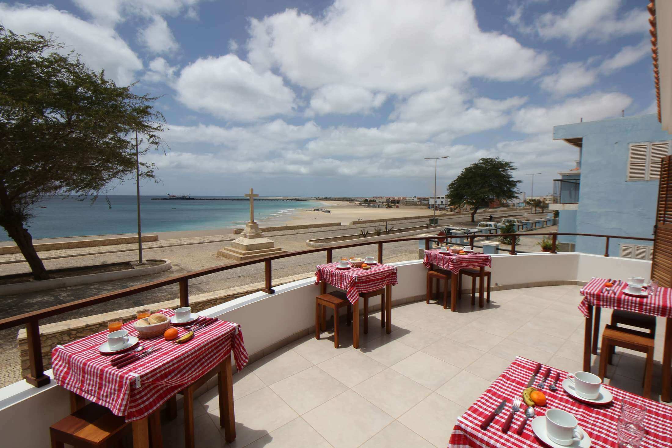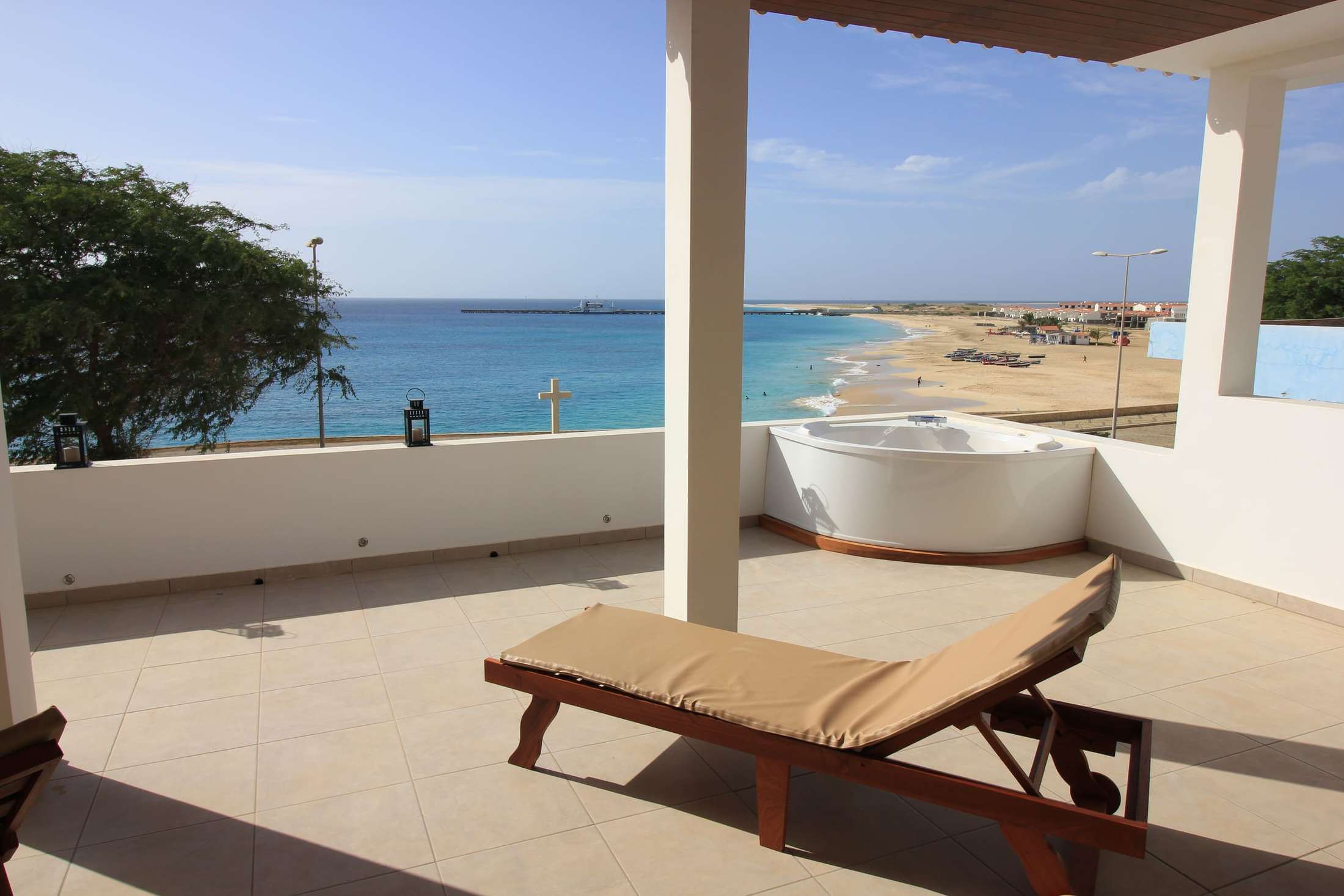 Im Herzen von Vila do Maio, früher Porto Inglês, und dennoch direkt am Strand gelegen. Restaurants, Geschäfte, der Markt, die Post und Banken – alles befindet sich in Laufnähe.
