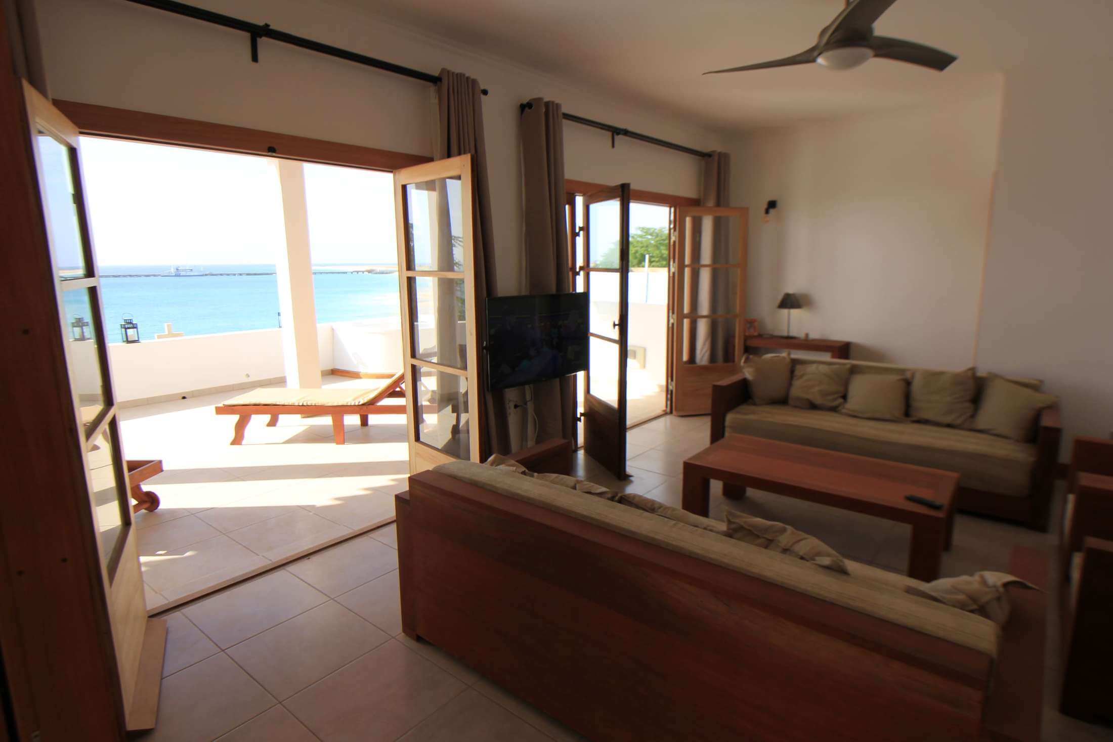 Modernes Haus mit neun Schlafzimmern ist direkt am Meer gelegen und verfügt über eine spannende Historie. Zu Beginn des 20. Jahrhunderts wurde das Haus von der Familie Evora de Maio am „Dock“ von Porto Inglês erbaut. Die Familie verdiente ihr Geld mit Salz aus den Salinen, dass sie u.a. in die Vereinigten Staaten importierten. Nach dem Tod der ersten Generation wurde das Haus an die Nazarener-Kirche verkauft, die es bis 2003 als Klassenzimmer und Unterkunft für den Pastor nutzte. 2010 wurde damit begonnen, dass Haus unter der Zielsetzung von „Raum, Geselligkeit, Modernisierung und Charme“ komplett umzubauen. 2018 wurde dann das heutige Casa Evora eröffnet.