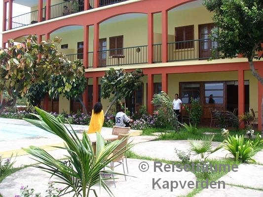 Schöne Aussenanlage mit großem Pool, Bar und herrlichem Blick auf Brava. Ein idealer Treffpunkt zum Sonnenuntergang. Restaurant, Rezeption mit Internet, Kiosk, kostenfreies Wlan.