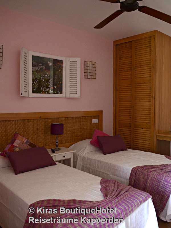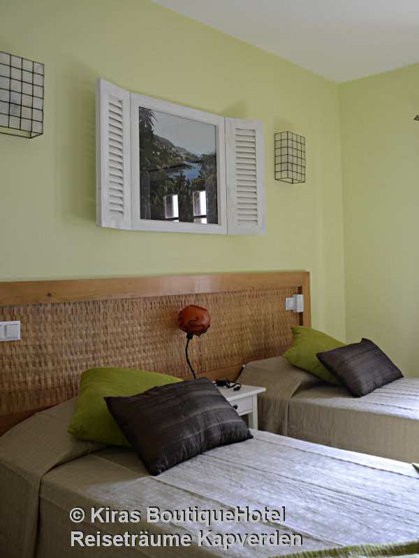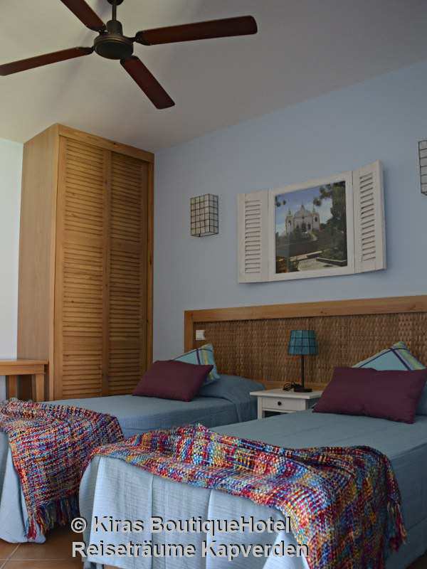 Unterbringung: Die geschmackvoll eingerichteten Zimmer verfügen über Dusche/WC, Deckenventilator, TV, Telefon, Internetzugang, Mini-Kühlschrank und Safe. Die Dekoration der Zimmer wurde von der jeweiligen Insel von Kap Verde - deren Namen es trägt - inspiriert, was sich eindeutig in der Verwendung von Farben / Möbel und Bilder wieder spiegelt.
