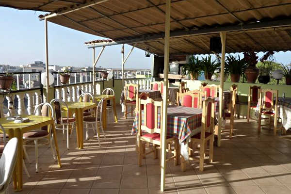 Verpflegung: Frühstückbuffet auf der Dachterrasse