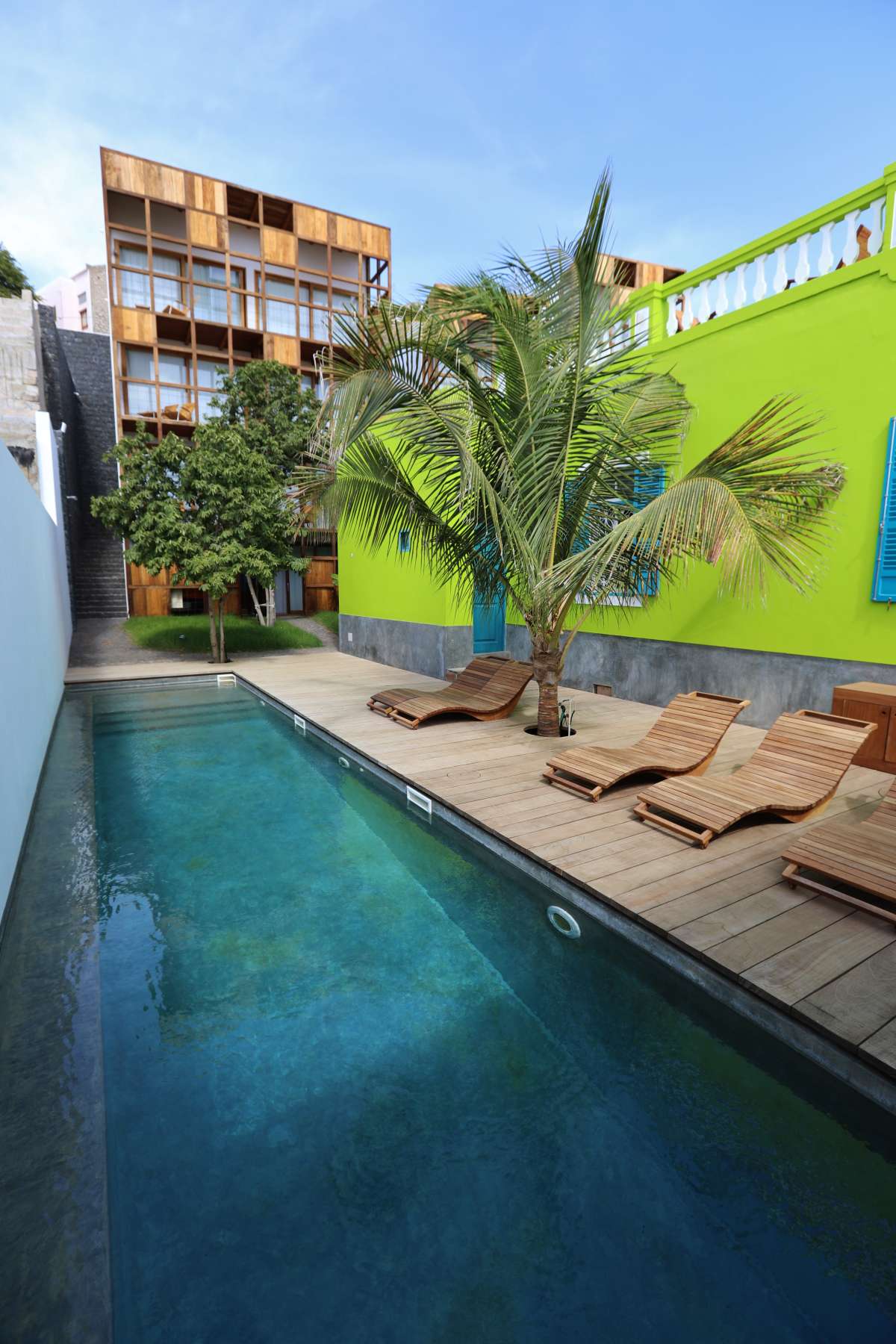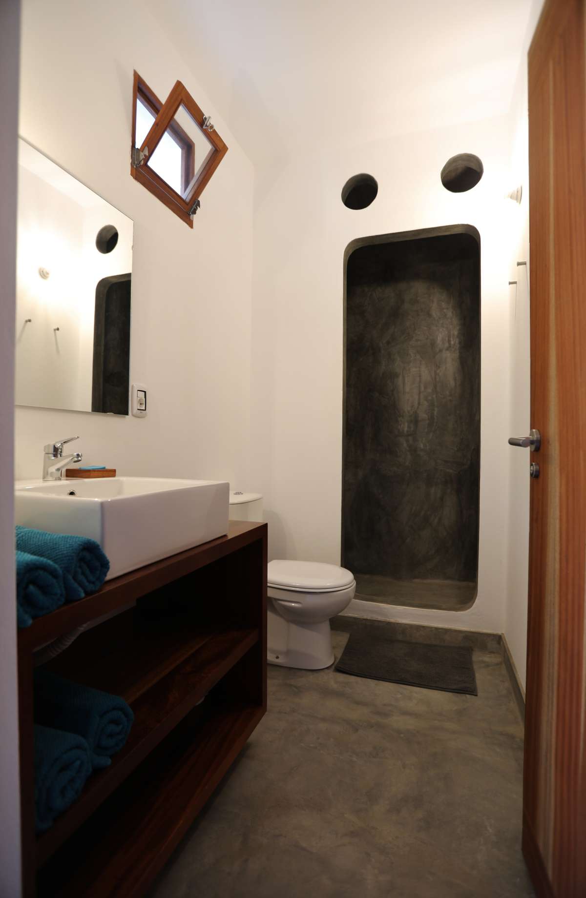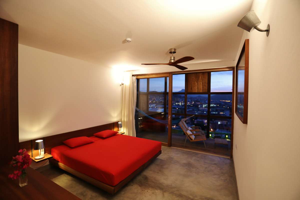 Unterbringung: Die 11 modernen, lichtdurchfluteten Zimmer, sowie eine Suite haben alle ein eigenes Bad/WC, Ventilator, ein Panoramafenster, sowie einen Balkon mit Hängematte. Dem Konzept des Hauses entsprechend gibt es kein TV.