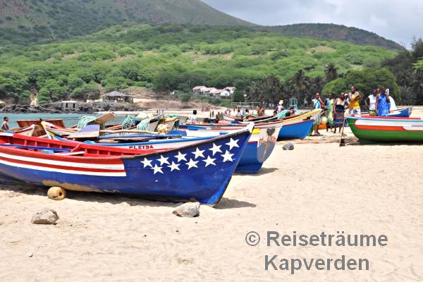 Am Rande des expandierenden Fischerortes, liegt der einzige helle Palmenstrand der Kap Verden. Der feinsandige Strand und das tiefblaue Meer laden geradezu ein hier erholsame Badetage im Schatten der Palmen zu verbringen.