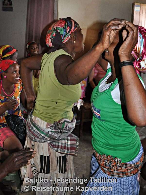 Schon bei unserem zweiten Urlaub Im Dezember 1999 waren wir mit mit 4 anderen Gästen auf einer Wanderung ins Tal von Saõ Miguel unterwegs. Höhepunkt dieser Wanderung war sicher die Live-Vorführung des Batuko der Frauen. Seit Anfang an ist der Batuko Bestandteil unserer Urlaubsprogramme auf Santiago.