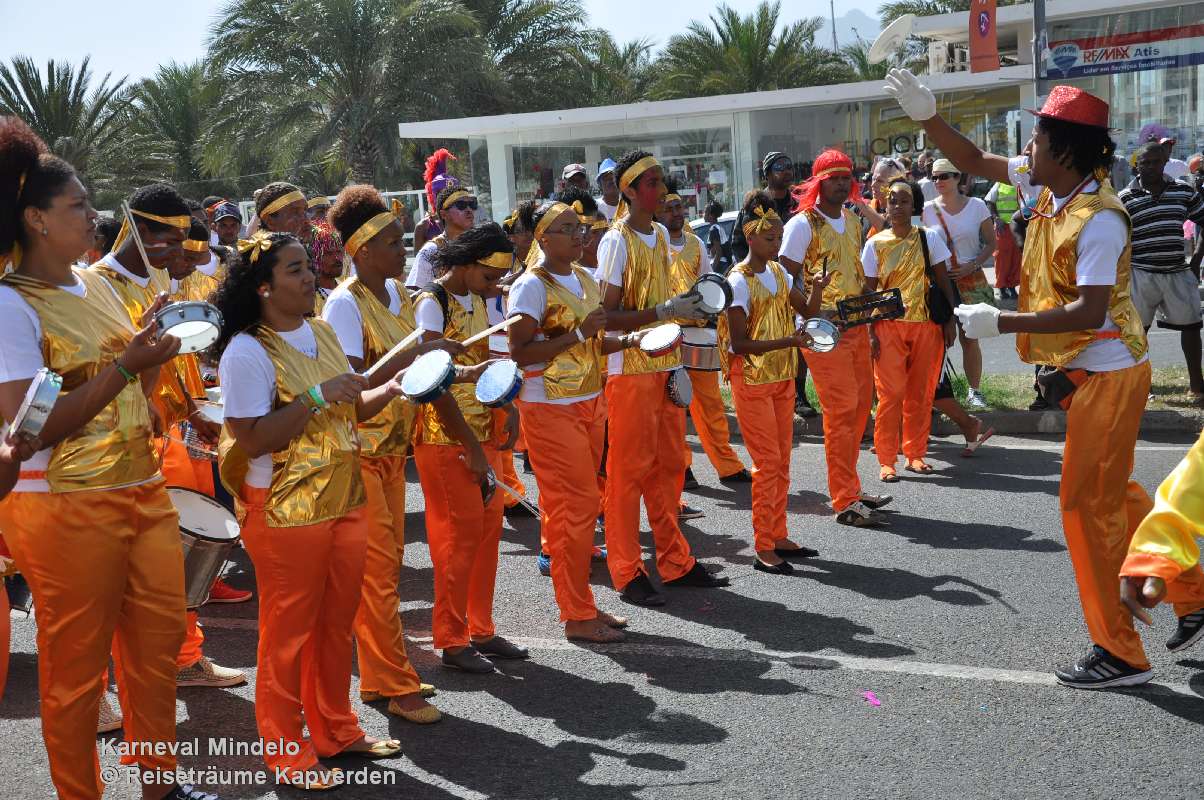 Der Karneval in Mindelo veränderte sich, weg von den rauen Sitten der Kolonialmacht Portugal, wo es üblich war, sich während des Karnevals mit Unrat zu bewerfen. Die Rhythmen der Batucadas (Trommelgruppen), die während des Karnevals durch die Straßen ziehen, vermischen brasilianische Einflüsse (Samba aus Rio de Janeiro, Axé-Rhythmen aus Salvador da Bahia) mit ureigenen kapverdischen Grooves (Coladeira, Batuko, San Jon, Mandingue) zu einem eigenständigen, identifizierbar kapverdischen Mix.