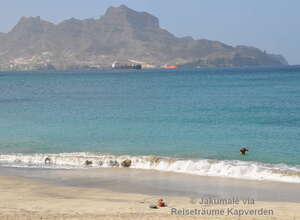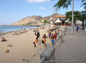 Am späten Nachmittag gehen wir zum beliebtesten Strand in Mindelo, nach Lajinha. Hier treffen sich jung und alt zum entspannen. Es gibt eine ganze Reihe von Strandbars, in denen man für wenig Geld erfrischende Getränke bekommt. Der ein oder andere nutzt die Zeit für ein weiteres Bad im Meer. Es reicht aber auch, einfach nur da zu sitzen und dem gemächlichen Treiben zu zuschauen. "Cabo Verde-no stress", so ist es überall zu lesen, und es ist tatsächlich so. Hier ist alles ein wenig unaufgeregter und weniger hektisch. Die Menschen, obgleich nach unseren Maßstäben arm, strahlen eine ansteckende Lebensfreude und Ausgeglichenheit aus, die man in unseren Breiten oft vermisst.