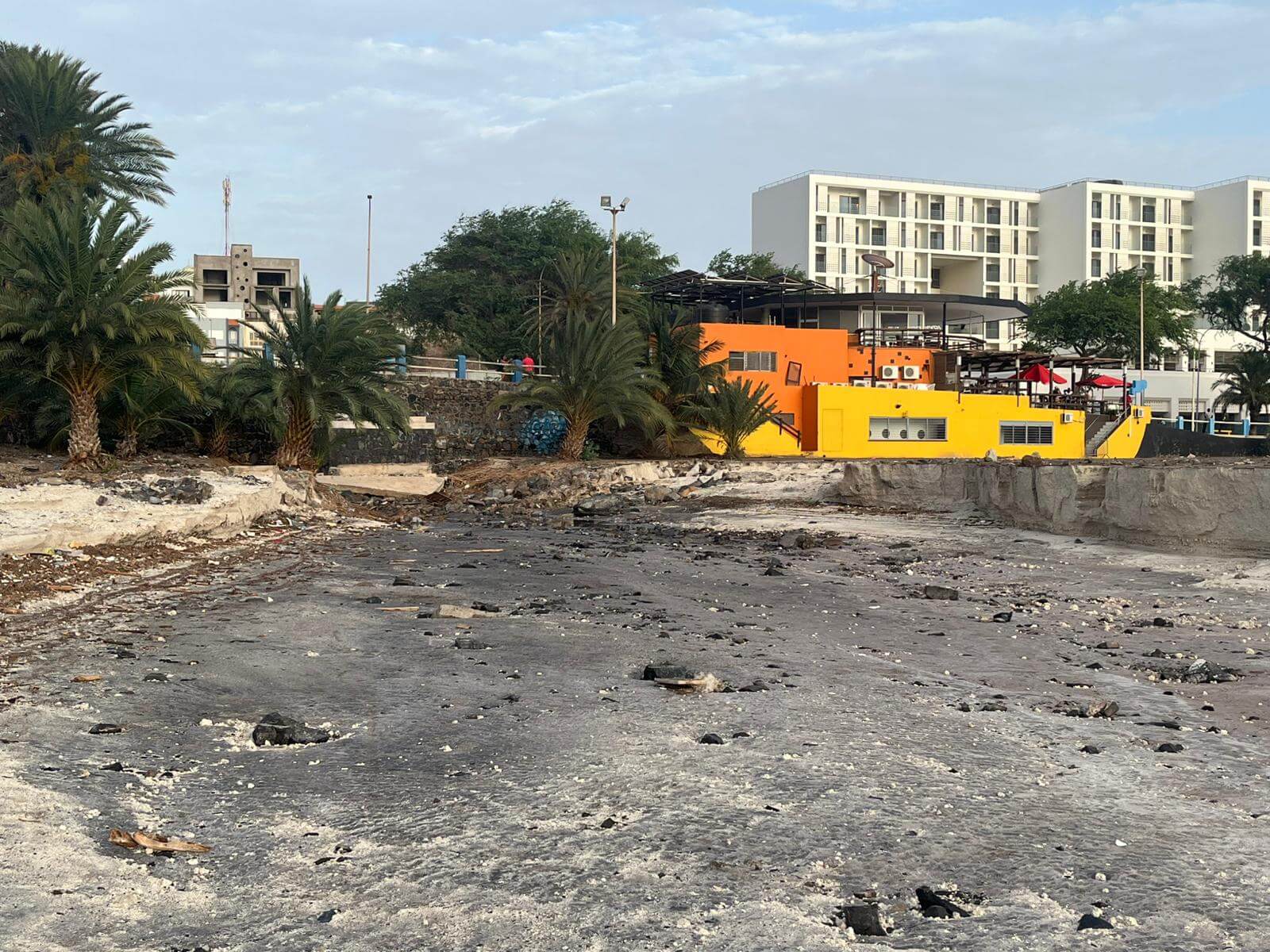 Straßen und Verkehr: Schlamm und Geröll machten direkt nach dem Unwetter viele Straßen unpassierbar. Wichtige Verbindungswege, darunter die Zufahrten zum Flughafen von São Vicente und zur Küstenortschaft Baía das Gatas, wurden von den Fluten blockiert. Diese Hauptrouten konnten jedoch innerhalb eines Tages geräumt und wieder geöffnet werden, sodass der Verkehr dort mittlerweile normal läuft. Andernorts sind die Schäden gravierender: Im Calhau-Tal wurde die Hauptstraße stellenweise weggespült; eine notdürftige Umleitung wurde zwar geschaffen, ist aber schmal, löchrig und weiterhin gefährlich. Auch eine Brücke, die mehrere Wohnviertel von Mindelo an die Hauptverkehrswege anschließt, wurde von den Fluten zerstört. Anwohner griffen hier selbst zur Tat und räumten Baumstämme und Trümmer beiseite, um zumindest für Fußgänger wieder einen schmalen Übergang zu schaffen. Einige abgelegene Siedlungen waren bis zur Räumung dieser Zugänge vorübergehend von der Außenwelt abgeschnitten. Mittlerweile sind die meisten Verkehrswege wieder befahrbar, und der öffentliche Nahverkehr (u.a. Minibusse) konnte seinen Betrieb großteils wieder aufnehmen, wenn auch teilweise auf angepassten Routen. Dennoch wird in betroffenen Zonen weiterhin zu Vorsicht geraten, da Straßenränder unterspült sein könnten und provisorische Passagen mit Vorsicht zu befahren sind.
