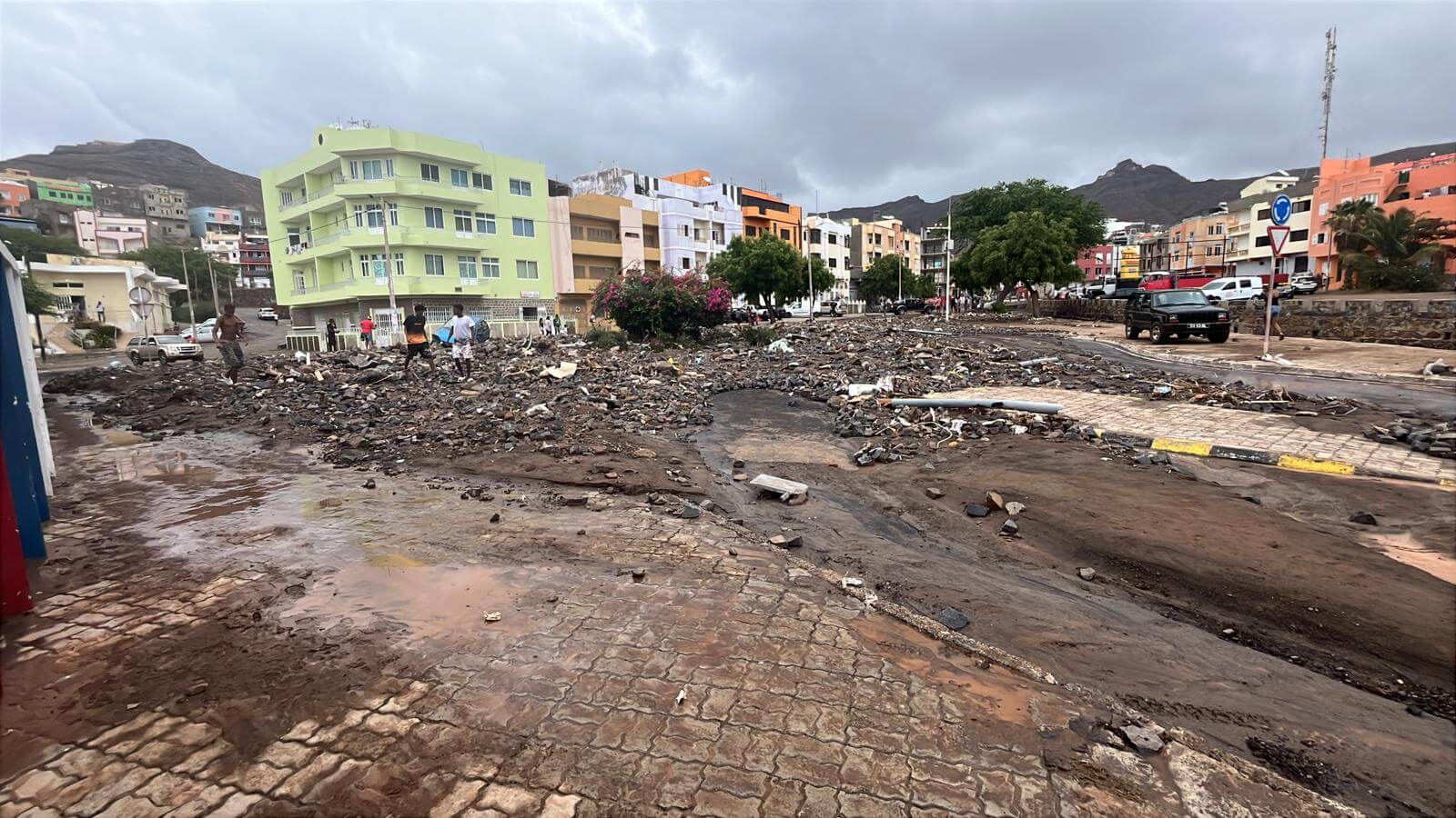 Mindelo und umliegende Gegenden präsentierten sich am nächsten Morgen in einem Bild der Verwüstung: Schlammlawinen und Geröll blockierten etliche Straßen, Autos blieben stecken, und viele Einwohner standen fassungslos vor den Ruinen ihrer Häuser.