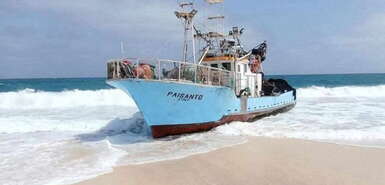 Fischerboot vor der Insel Maio auf Grund gelaufen