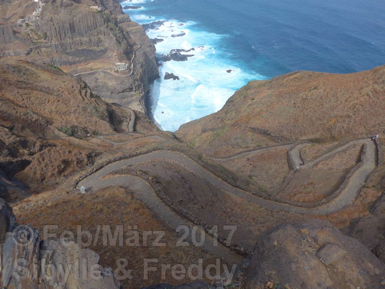 Von Ponta do Sol nach Cha de Igreja auf Santo Antao. Ca 5 Stunden, sehr schöne Küstenwanderung. Wir haben das Gepäck vom Hotel in Ponta do Sol zum Hotel „Haus am Weg“ transportieren lassen.