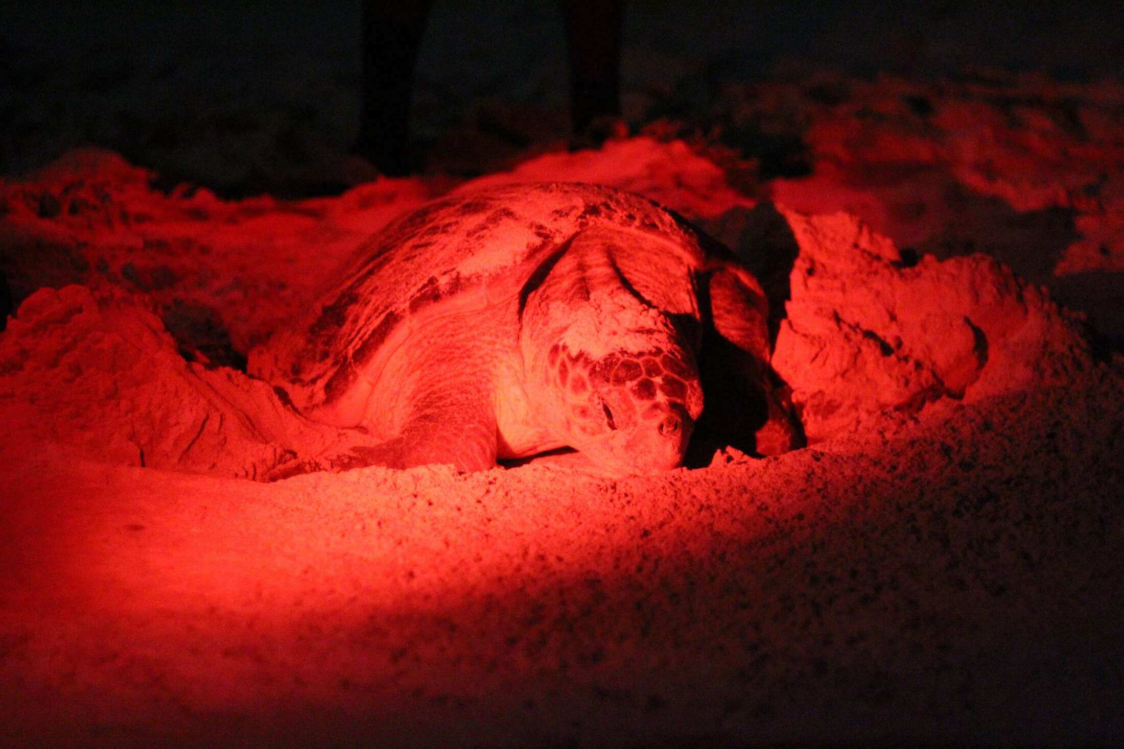 Natürlich hatte ich gehofft, dass wir mindestens eine Schildkröte sehen würden. Wir hatten aber tatsächlich das Glück, gleich beim Betreten des Strandes unsere erste Schildkröte zu sehen. Unter Anleitung unserer Guides hatten wir so die Möglichkeit, der Schildkröte beim Ablegen der Eier zuzuschauen. Ein wirklich faszinierendes Schauspiel, wenn man bedenkt, dass eine Schildkröte bis zu 80 Eier ablegt. Im Anschluss deckt sie das Nest zu und wirbelt den Sand auf, um die Existenz des Nestes zu vertuschen, bevor sie sich zurück ins Meer begibt.