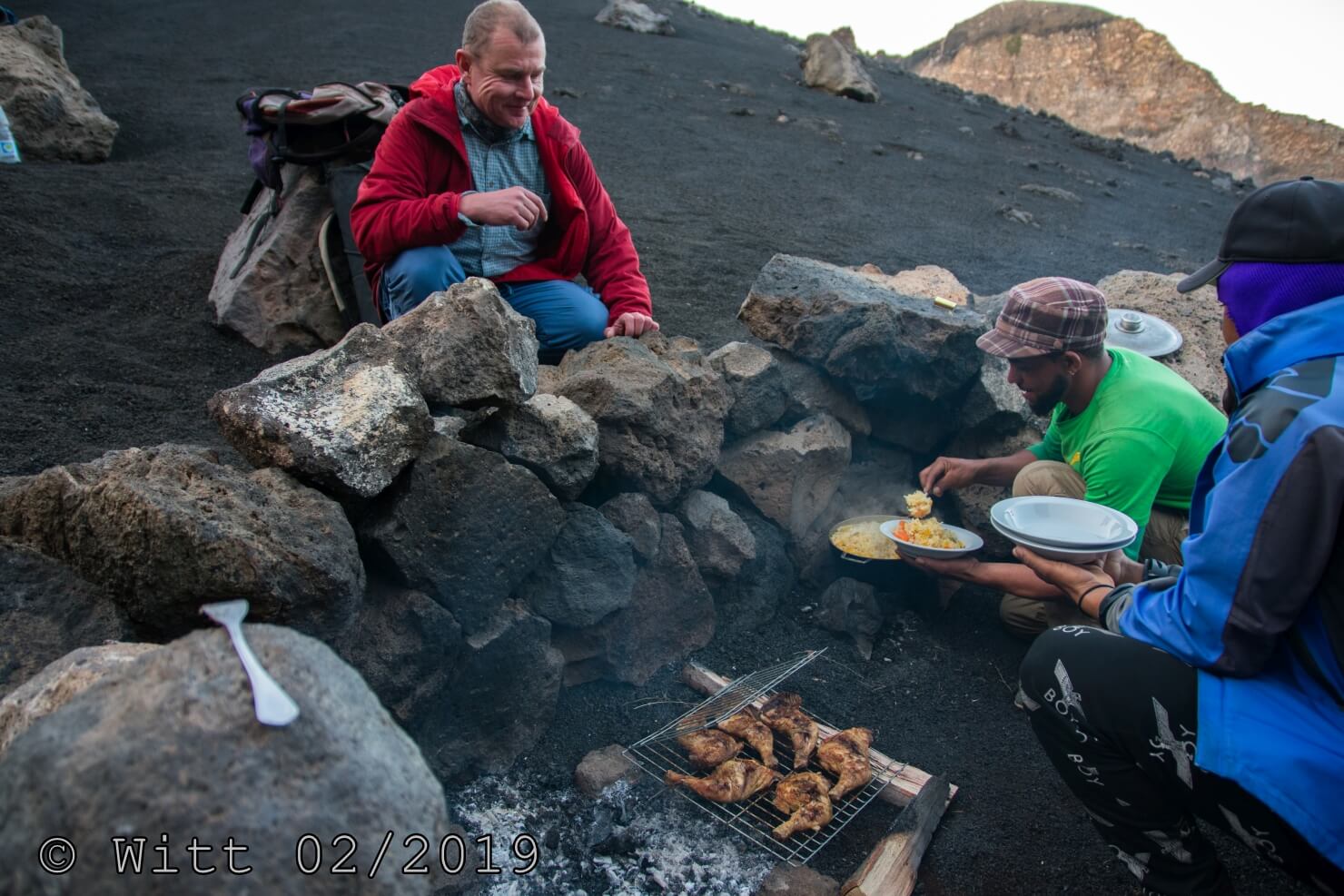 Unsere Begleitung hatte die Temperaturen wohl unterschätzt, die waren z.T. mit kurzen Hosen oben und sahen sich gezwungen, nachts nochmal das Feuer anzumachen. Aber uns ging es gut.